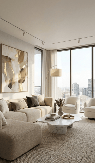 Wall art instantly adds character. Choose abstract prints, soft landscapes, or muted photography that complements your color palette. Large-scale art can make a small apartment feel more intentional and less busy.