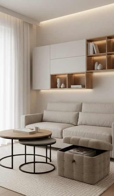 A flexible layout using Nesting Tables or Lightweight Accent Chairs allows the room to adapt to daily life without feeling crowded.